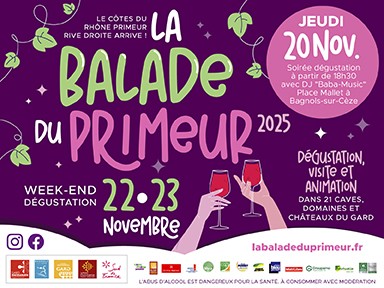 Jeudi 20 Novembre de 19h à 23h : La Balade du Primeur sera lancée à Bagnols- sur- Cèze.