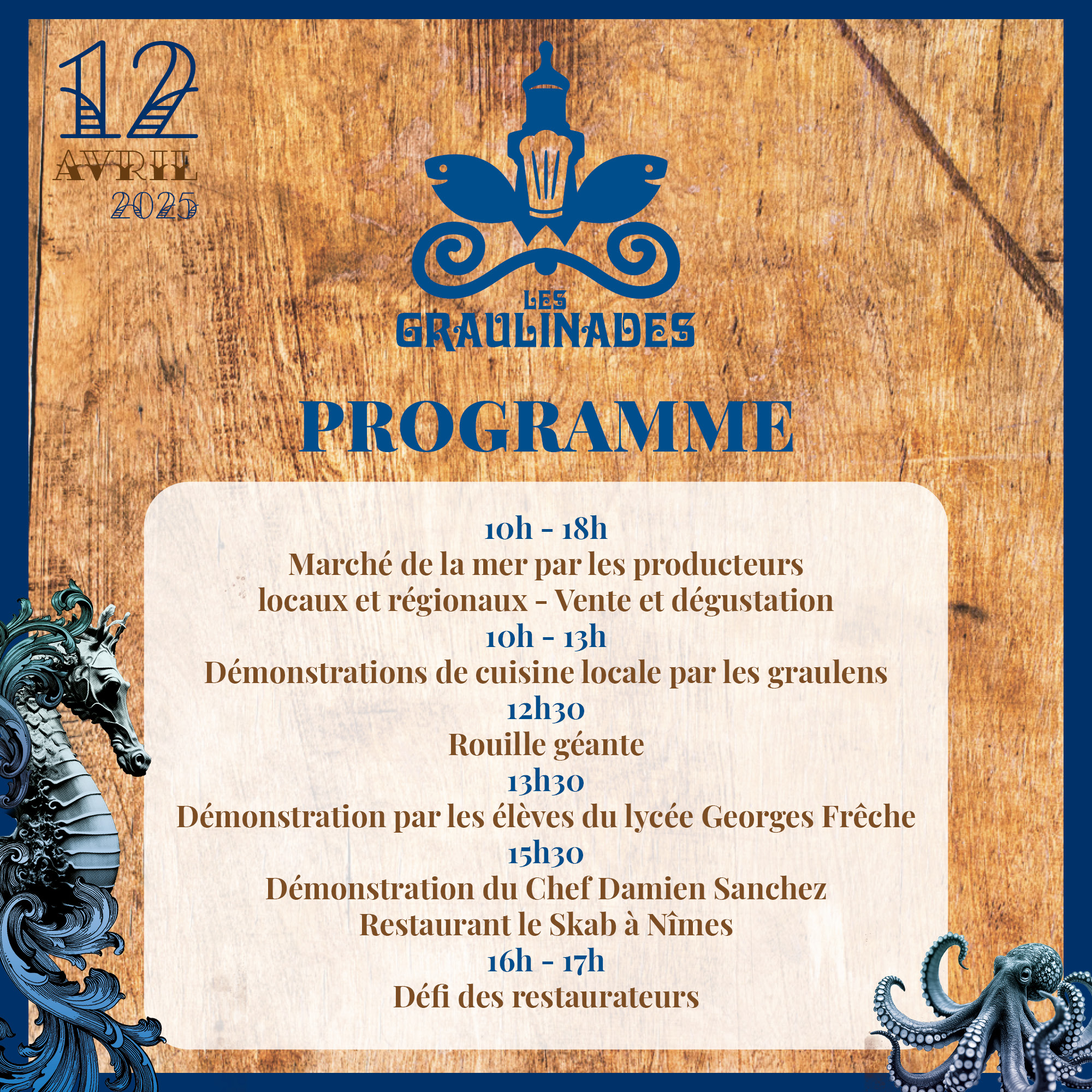 Comme chaque année en avril, l'événement culinaire incontournable du Grau-du-Roi "Les Graulinades" revient le samedi 12 avril 2025 ; une journée dédiée à la gastronomie méridionale durant laquelle toutes les saveurs et produits de la méditerranée sont mis à l'honneur.